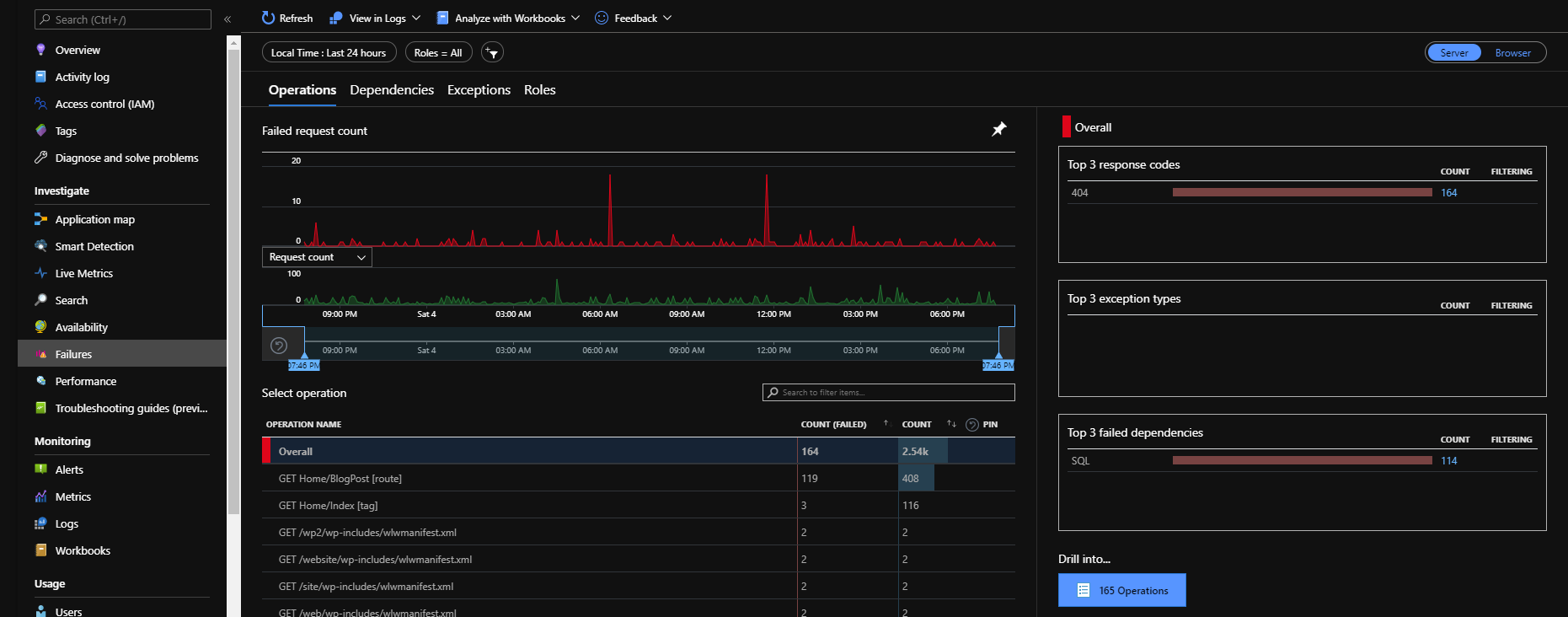 But given I use App Insights, let's talk about that! With minimal work required, you get tons of logs, charts, error and diagnostic information out of the box.