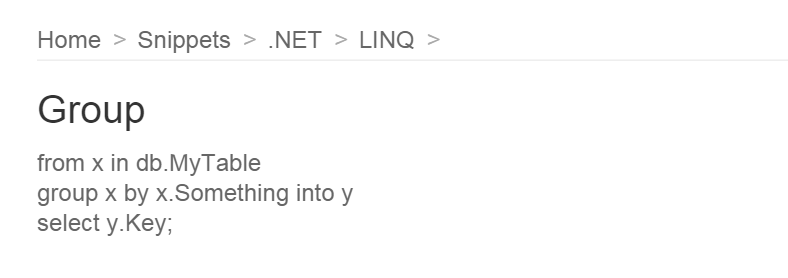 Then in each of those, I can drill in again and again until I need to write the snippet itself, which looks like this ...