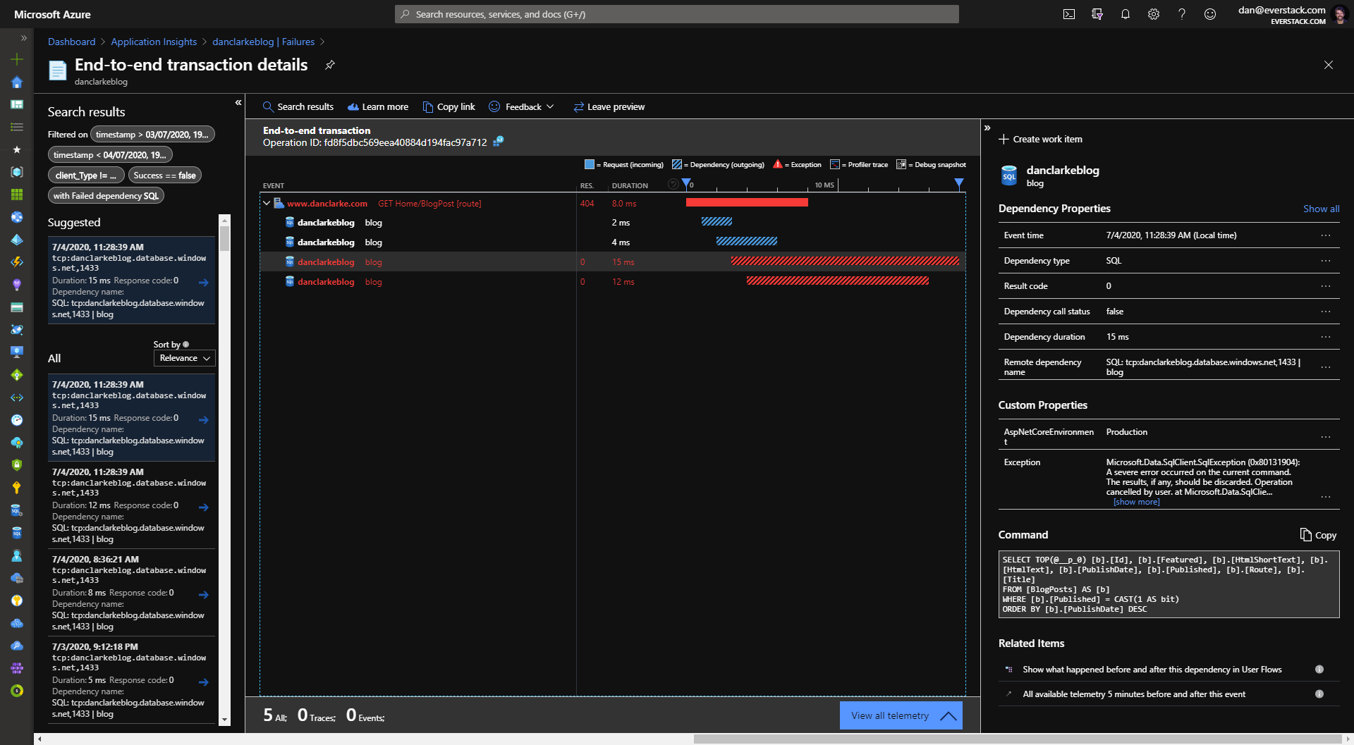 But given I use App Insights, let's talk about that! With minimal work required, you get tons of logs, charts, error and diagnostic information out of the box.