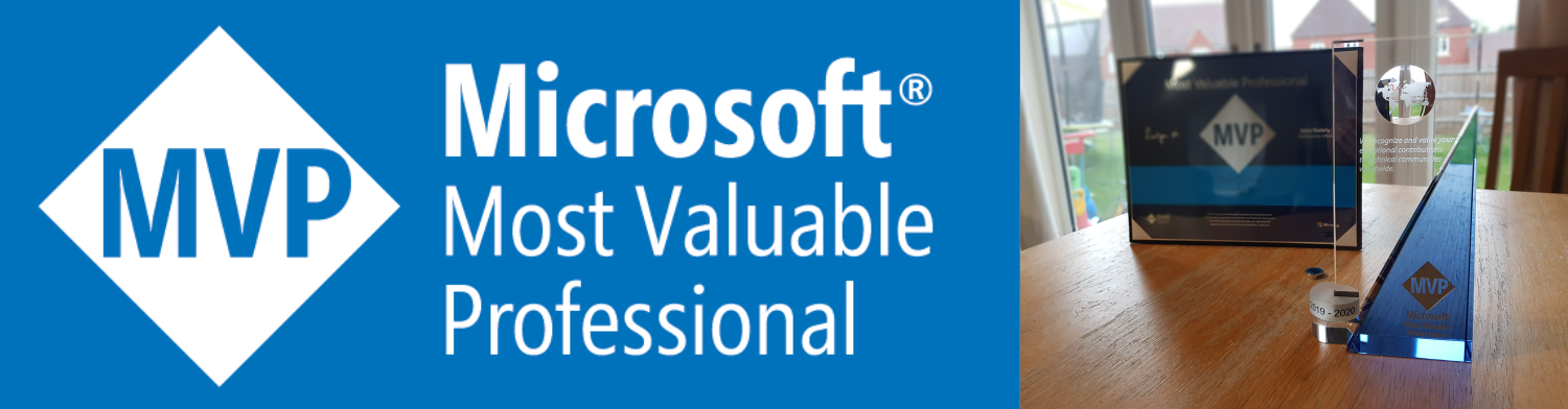 A couple of Sunday's ago was the last day of our family holiday. We'd hired a static caravan in Wales for the week, and other than busting my ankle at a trampoline park in Cardiff - it was a great holiday! And on that last day, it got a lot better! My wife Anna was at the beach with Jack (our eldest) and I was at the caravan with Mason (our 3-year-old). I checked my email on my phone, and saw that I had an email from Microsoft saying that I'd been awarded the Microsoft MVP award!!